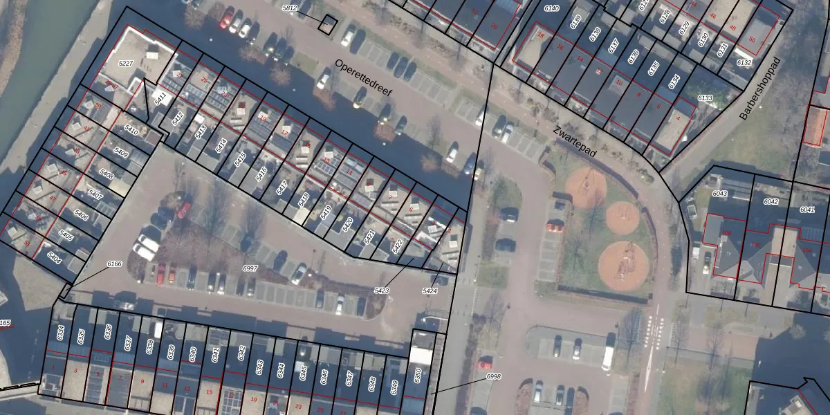 Gebruik de zoekbalk of klik op een perceel voor informatie over de adressen binnen dit perceel.
