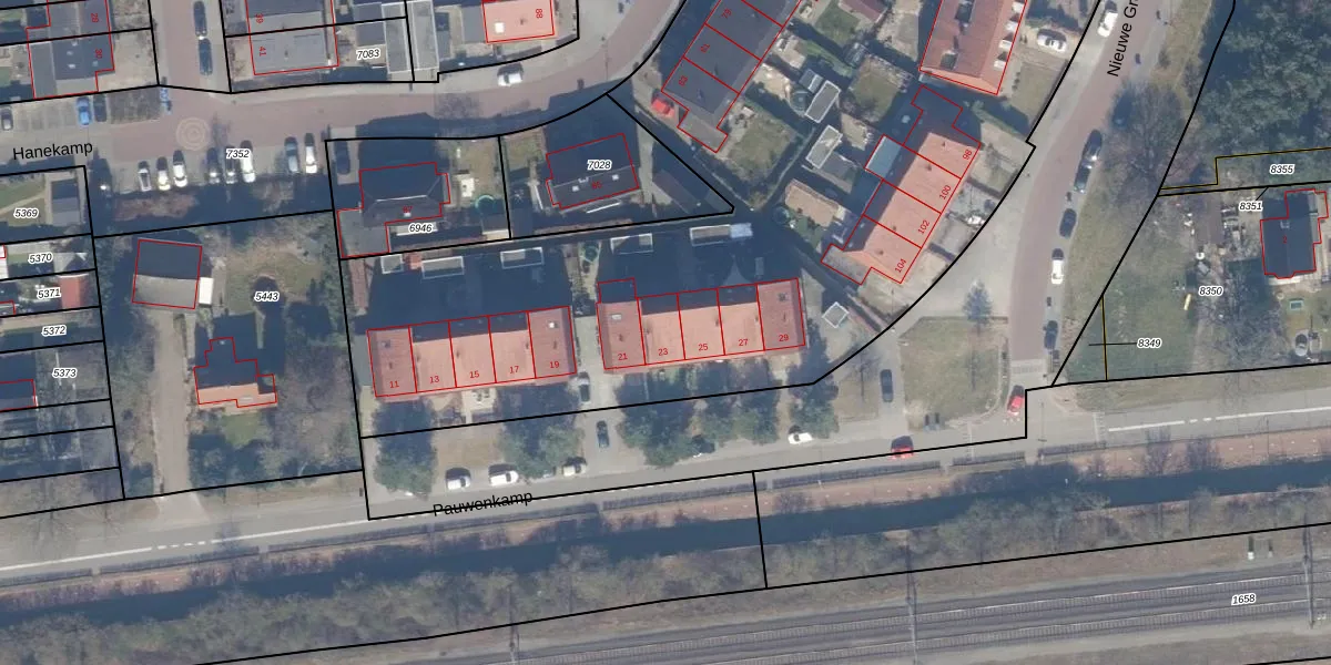 Het perceel waarop Pauwenkamp 23 staat heeft een oppervlakte van 8545 m². Dit is een zeer groot perceel. De perceeloppervlakte wordt geregistreerd door het Kadaster. Gedetailleerde informatie over de maten van dit perceel kunt u vinden in het rapport Kadastrale kaart met maatvoering van Pauwenkamp 23.