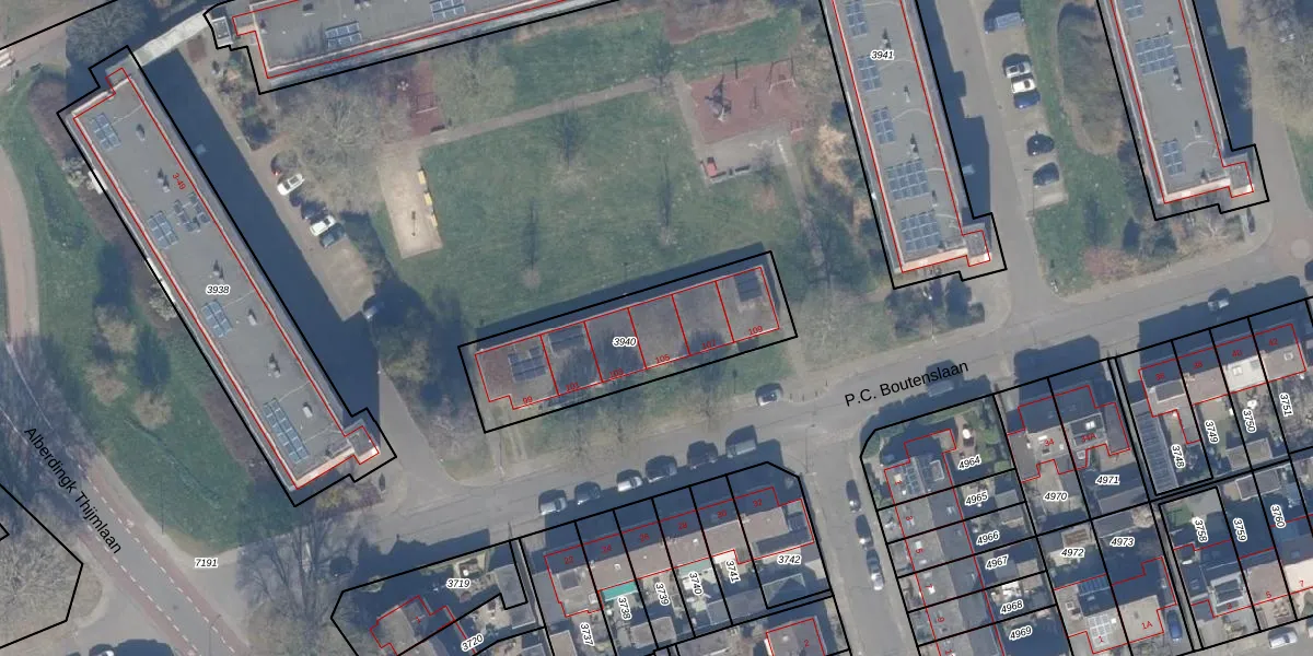 P.C. Boutenslaan 105 is gelegen op kadastraal perceel HDW00B3940. Deze kadastrale aanduiding is uniek en wordt gebruikt door het Kadaster om eigendomsrechten en andere zakelijke rechten vast te leggen. Het perceel maakt onderdeel uit van de kadastrale gemeente Harderwijk.