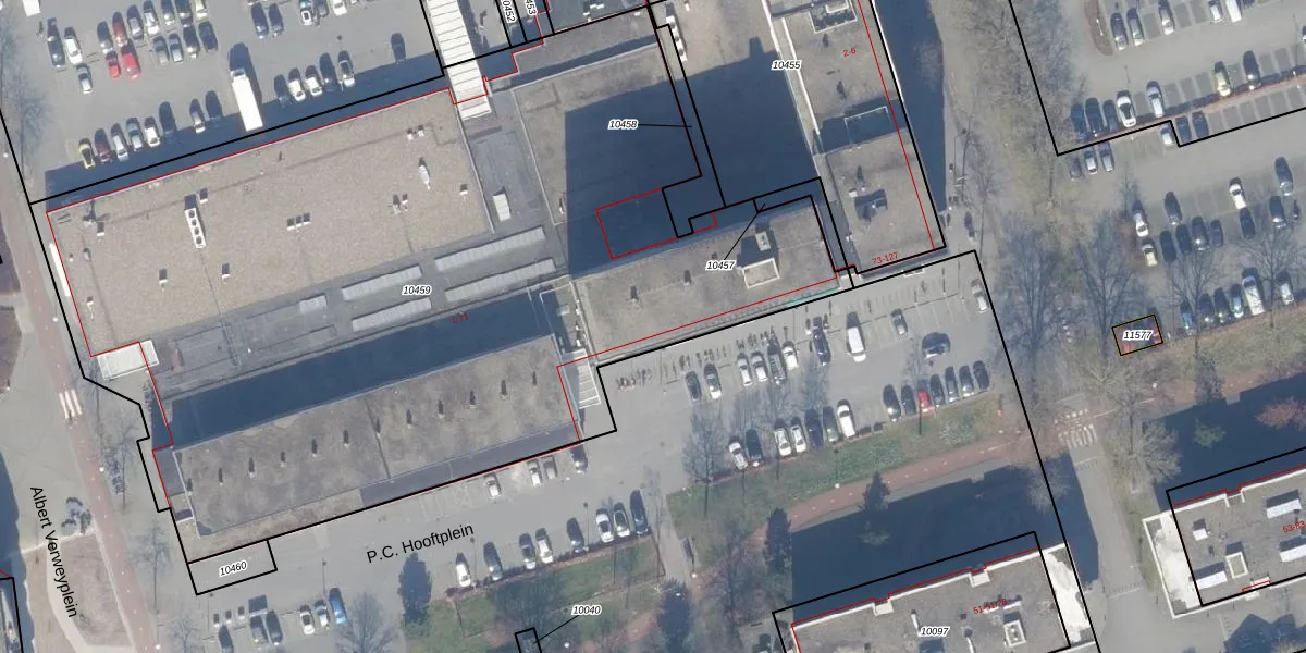 Het perceel waarop P.C. Hooftplein 38 staat heeft een oppervlakte van 5810 m². Dit is een zeer groot perceel. De perceeloppervlakte wordt geregistreerd door het Kadaster. Gedetailleerde informatie over de maten van dit perceel kunt u vinden in het rapport Kadastrale kaart met maatvoering van P.C. Hooftplein 38.