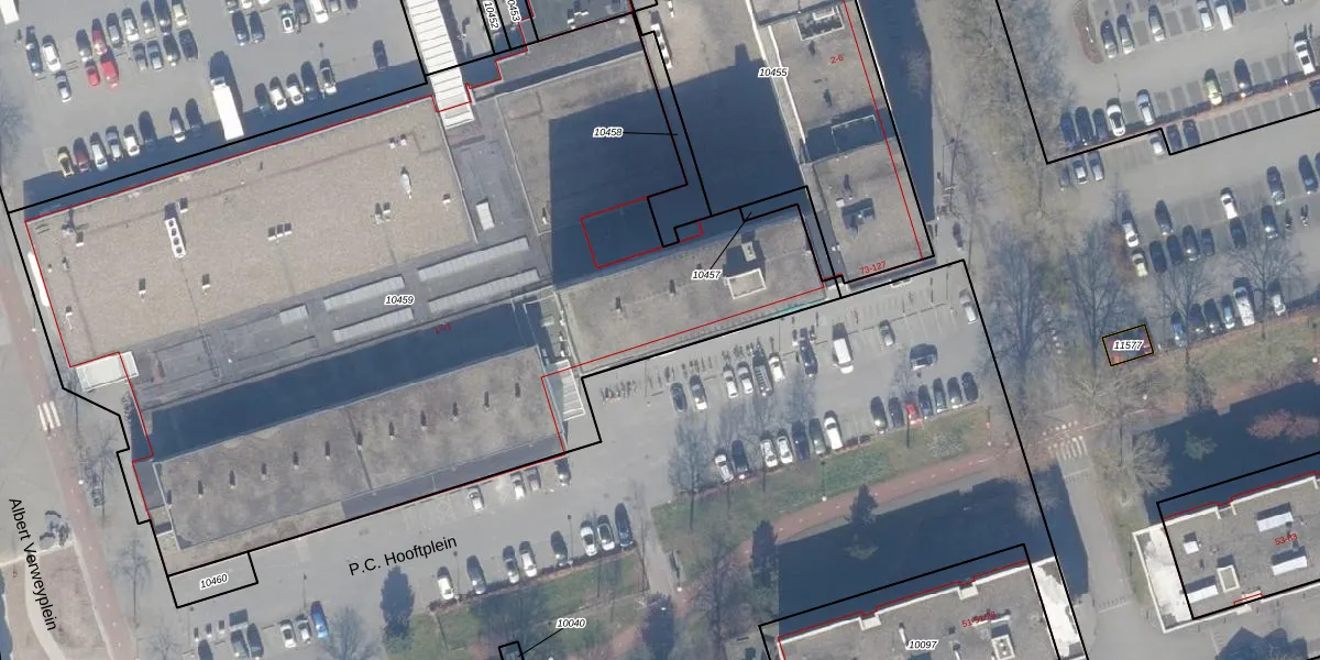 Het perceel waarop P.C. Hooftplein 39 staat heeft een oppervlakte van 5810 m². Dit is een zeer groot perceel. De perceeloppervlakte wordt geregistreerd door het Kadaster. Gedetailleerde informatie over de maten van dit perceel kunt u vinden in het rapport Kadastrale kaart met maatvoering van P.C. Hooftplein 39.