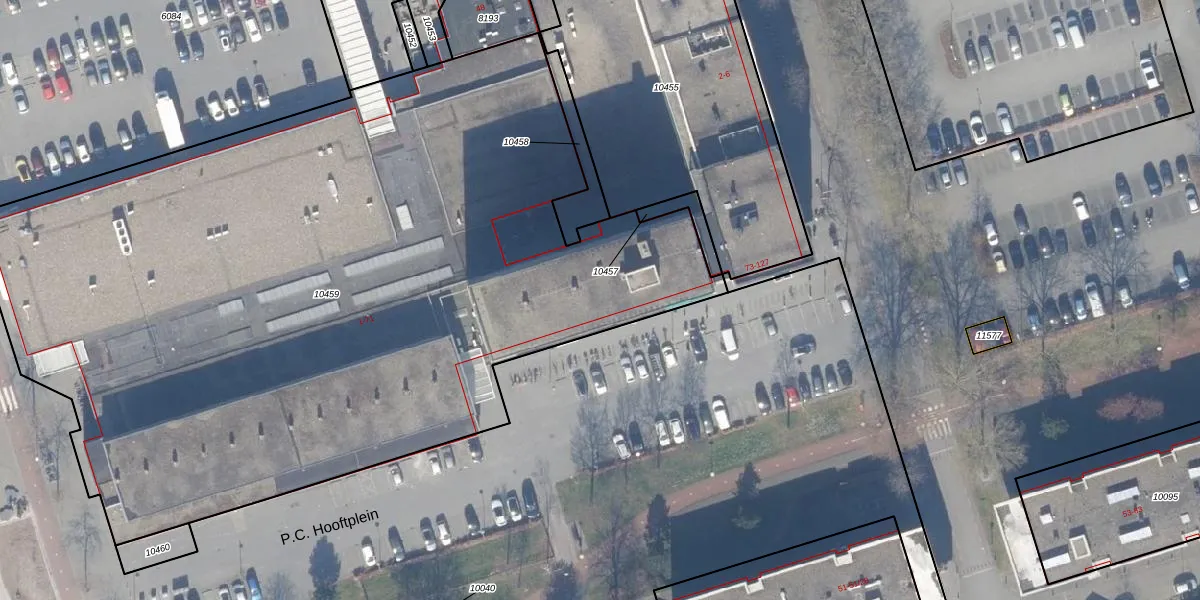 Het perceel waarop P.C. Hooftplein 46 staat heeft een oppervlakte van 5810 m². Dit is een zeer groot perceel. De perceeloppervlakte wordt geregistreerd door het Kadaster. Gedetailleerde informatie over de maten van dit perceel kunt u vinden in het rapport Kadastrale kaart met maatvoering van P.C. Hooftplein 46.