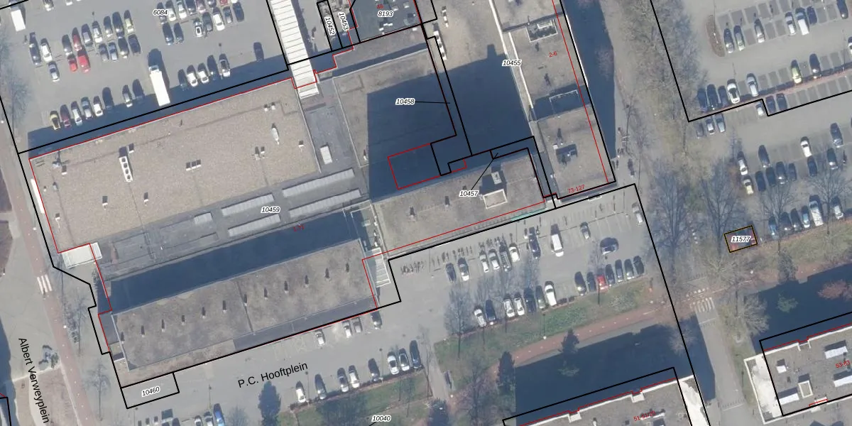 Het perceel waarop P.C. Hooftplein 53 staat heeft een oppervlakte van 5810 m². Dit is een zeer groot perceel. De perceeloppervlakte wordt geregistreerd door het Kadaster. Gedetailleerde informatie over de maten van dit perceel kunt u vinden in het rapport Kadastrale kaart met maatvoering van P.C. Hooftplein 53.