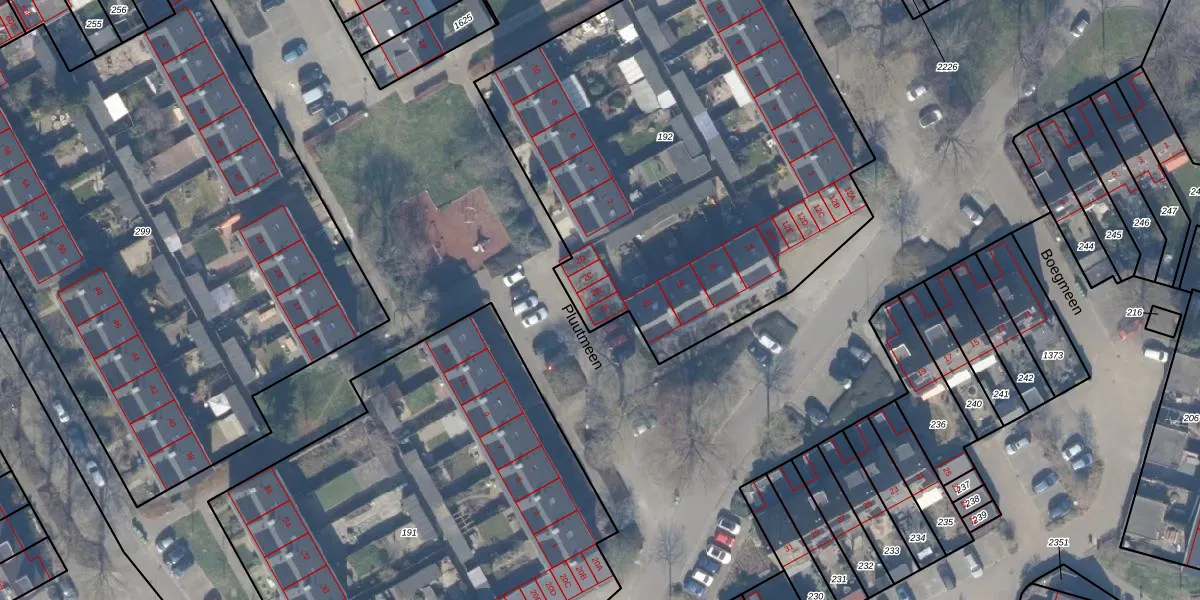 Het perceel waarop Pluutmeen 2-B staat heeft een oppervlakte van 2835 m². Dit is een zeer groot perceel. De perceeloppervlakte wordt geregistreerd door het Kadaster. Gedetailleerde informatie over de maten van dit perceel kunt u vinden in het rapport Kadastrale kaart met maatvoering van Pluutmeen 2-B.