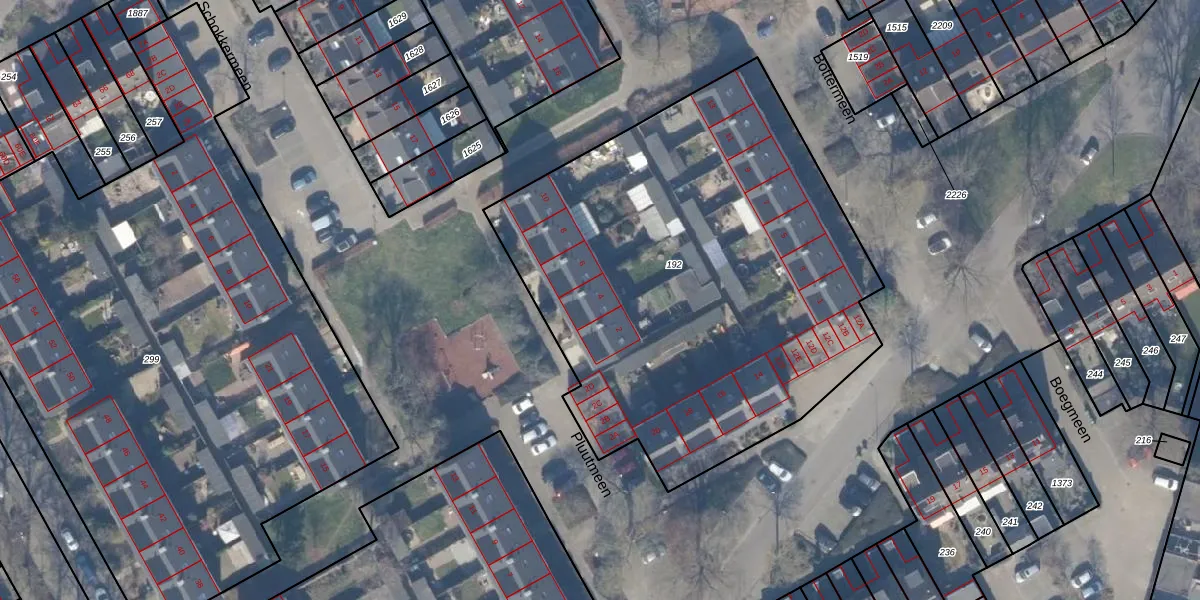 Het perceel waarop Pluutmeen 4 staat heeft een oppervlakte van 2835 m². Dit is een zeer groot perceel. De perceeloppervlakte wordt geregistreerd door het Kadaster. Gedetailleerde informatie over de maten van dit perceel kunt u vinden in het rapport Kadastrale kaart met maatvoering van Pluutmeen 4.