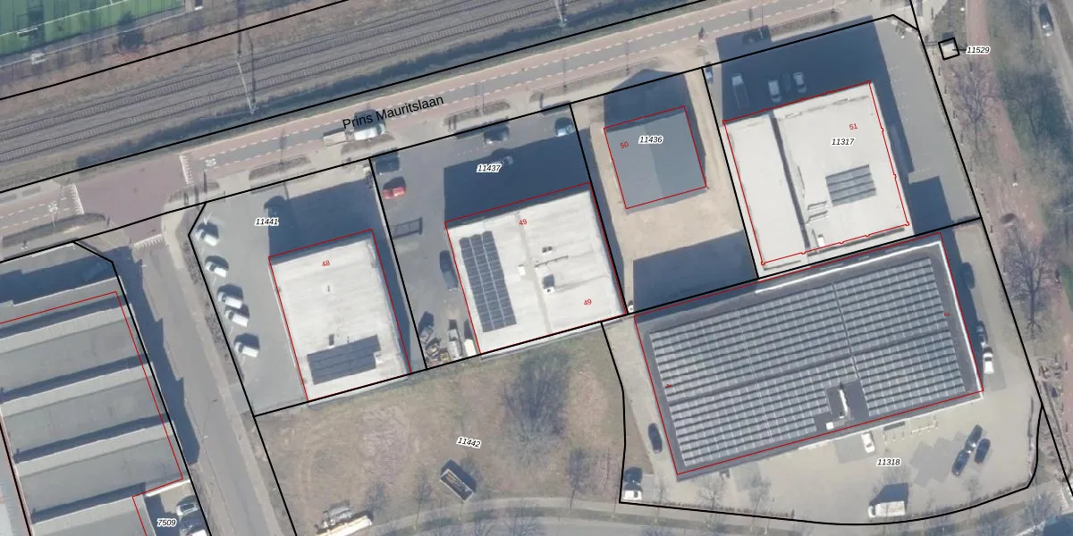Het perceel waarop Prins Mauritslaan 49 staat heeft een oppervlakte van 1585 m². Dit is een zeer groot perceel. De perceeloppervlakte wordt geregistreerd door het Kadaster. Gedetailleerde informatie over de maten van dit perceel kunt u vinden in het rapport Kadastrale kaart met maatvoering van Prins Mauritslaan 49.
