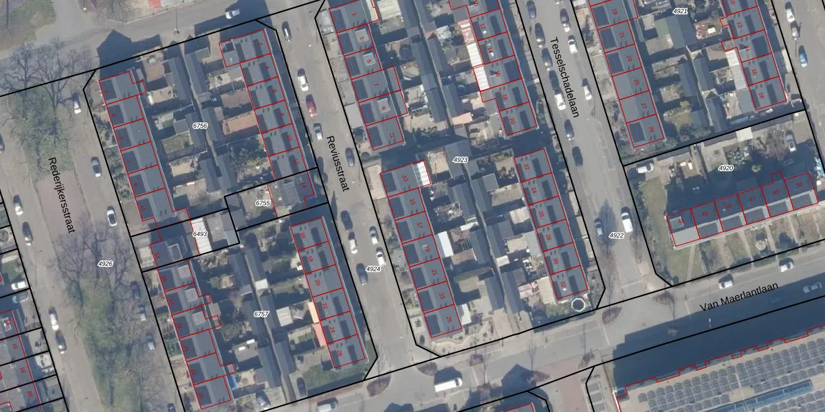 Het perceel waarop Reviusstraat 15 staat heeft een oppervlakte van 4310 m². Dit is een zeer groot perceel. De perceeloppervlakte wordt geregistreerd door het Kadaster. Gedetailleerde informatie over de maten van dit perceel kunt u vinden in het rapport Kadastrale kaart met maatvoering van Reviusstraat 15.