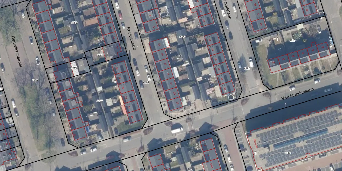 Het perceel waarop Reviusstraat 21 staat heeft een oppervlakte van 4310 m². Dit is een zeer groot perceel. De perceeloppervlakte wordt geregistreerd door het Kadaster. Gedetailleerde informatie over de maten van dit perceel kunt u vinden in het rapport Kadastrale kaart met maatvoering van Reviusstraat 21.