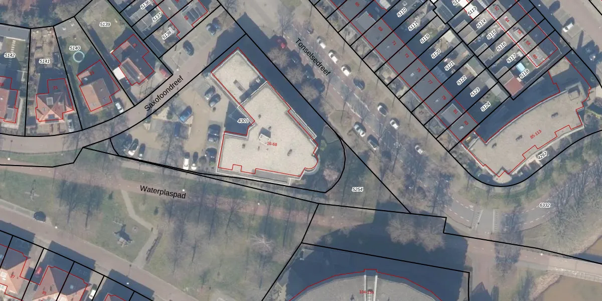 Saxofoondreef 64 is gelegen op kadastraal perceel HDW00I4301. Deze kadastrale aanduiding is uniek en wordt gebruikt door het Kadaster om eigendomsrechten en andere zakelijke rechten vast te leggen. Het perceel maakt onderdeel uit van de kadastrale gemeente Harderwijk.