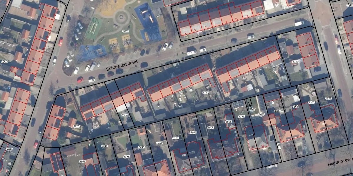 Schrassertstraat 18 is gelegen op kadastraal perceel HDW00B3717. Deze kadastrale aanduiding is uniek en wordt gebruikt door het Kadaster om eigendomsrechten en andere zakelijke rechten vast te leggen. Het perceel maakt onderdeel uit van de kadastrale gemeente Harderwijk.