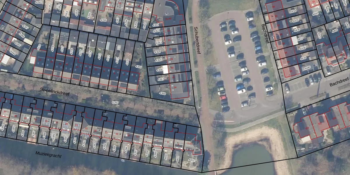 Schubertdreef 34 is gelegen op kadastraal perceel HDW00I4368. Deze kadastrale aanduiding is uniek en wordt gebruikt door het Kadaster om eigendomsrechten en andere zakelijke rechten vast te leggen. Het perceel maakt onderdeel uit van de kadastrale gemeente Harderwijk.
