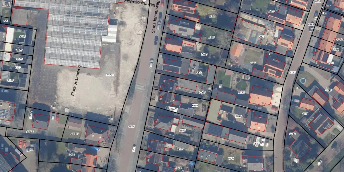 Gebruik de zoekbalk of klik op een perceel voor informatie over de adressen binnen dit perceel.