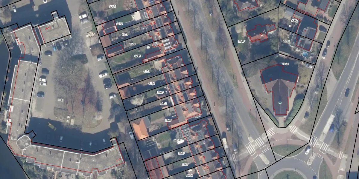 Gebruik de zoekbalk of klik op een perceel voor informatie over de adressen binnen dit perceel.