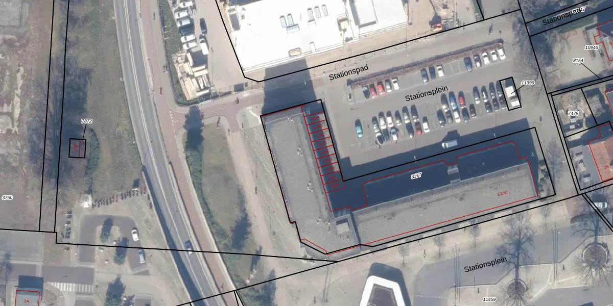 Het perceel waarop Stationsplein 116 staat heeft een oppervlakte van 2468 m². Dit is een zeer groot perceel. De perceeloppervlakte wordt geregistreerd door het Kadaster. Gedetailleerde informatie over de maten van dit perceel kunt u vinden in het rapport Kadastrale kaart met maatvoering van Stationsplein 116.