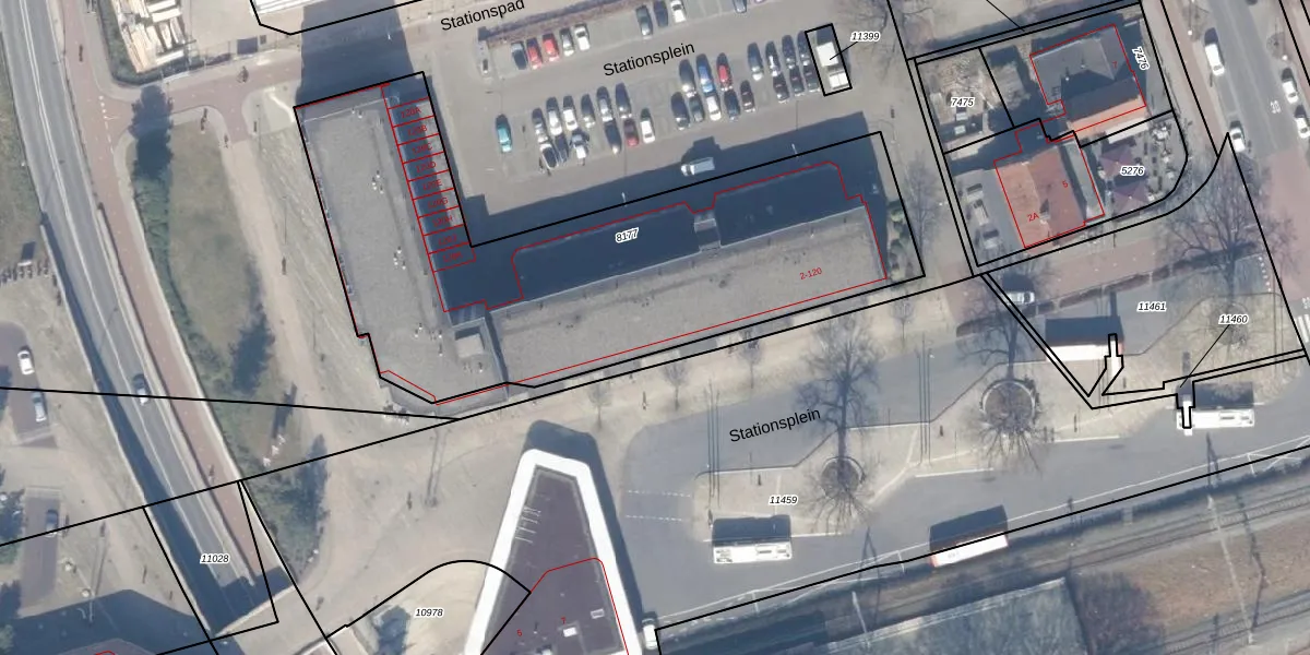 Het perceel waarop Stationsplein 12 staat heeft een oppervlakte van 2468 m². Dit is een zeer groot perceel. De perceeloppervlakte wordt geregistreerd door het Kadaster. Gedetailleerde informatie over de maten van dit perceel kunt u vinden in het rapport Kadastrale kaart met maatvoering van Stationsplein 12.
