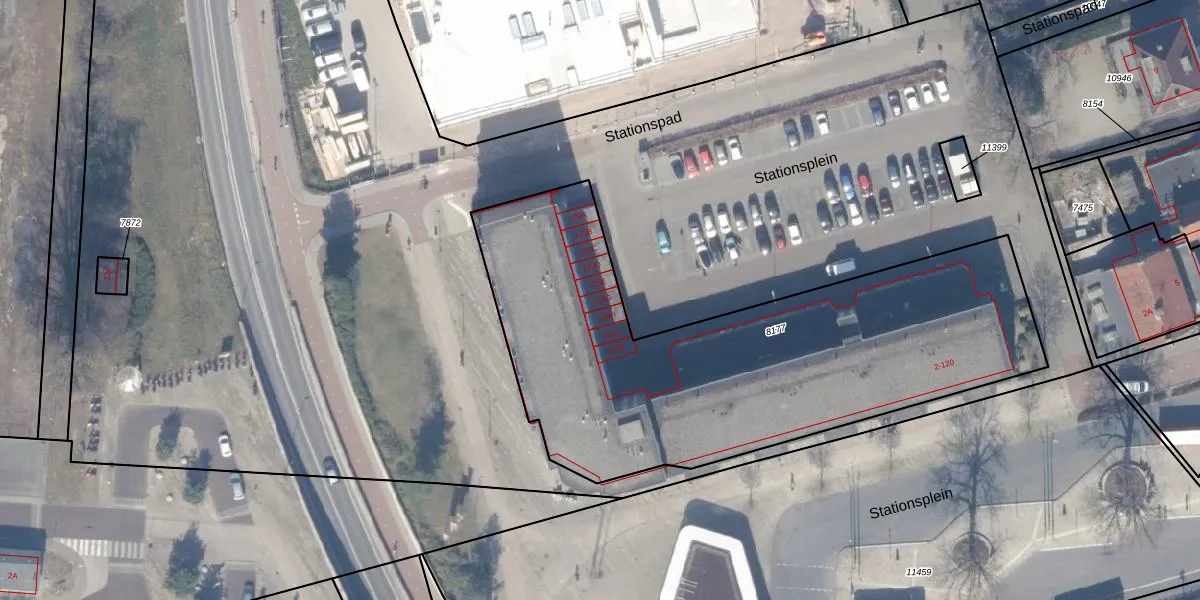 Het perceel waarop Stationsplein 120-G staat heeft een oppervlakte van 2468 m². Dit is een zeer groot perceel. De perceeloppervlakte wordt geregistreerd door het Kadaster. Gedetailleerde informatie over de maten van dit perceel kunt u vinden in het rapport Kadastrale kaart met maatvoering van Stationsplein 120-G.