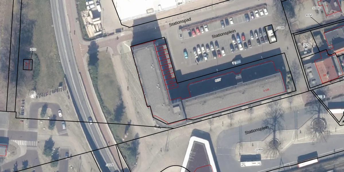 Het perceel waarop Stationsplein 120-K staat heeft een oppervlakte van 2468 m². Dit is een zeer groot perceel. De perceeloppervlakte wordt geregistreerd door het Kadaster. Gedetailleerde informatie over de maten van dit perceel kunt u vinden in het rapport Kadastrale kaart met maatvoering van Stationsplein 120-K.