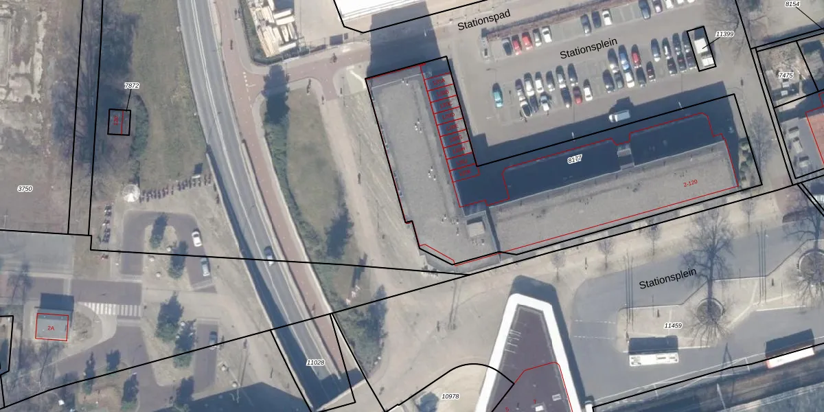 Het perceel waarop Stationsplein 22 staat heeft een oppervlakte van 2468 m². Dit is een zeer groot perceel. De perceeloppervlakte wordt geregistreerd door het Kadaster. Gedetailleerde informatie over de maten van dit perceel kunt u vinden in het rapport Kadastrale kaart met maatvoering van Stationsplein 22.
