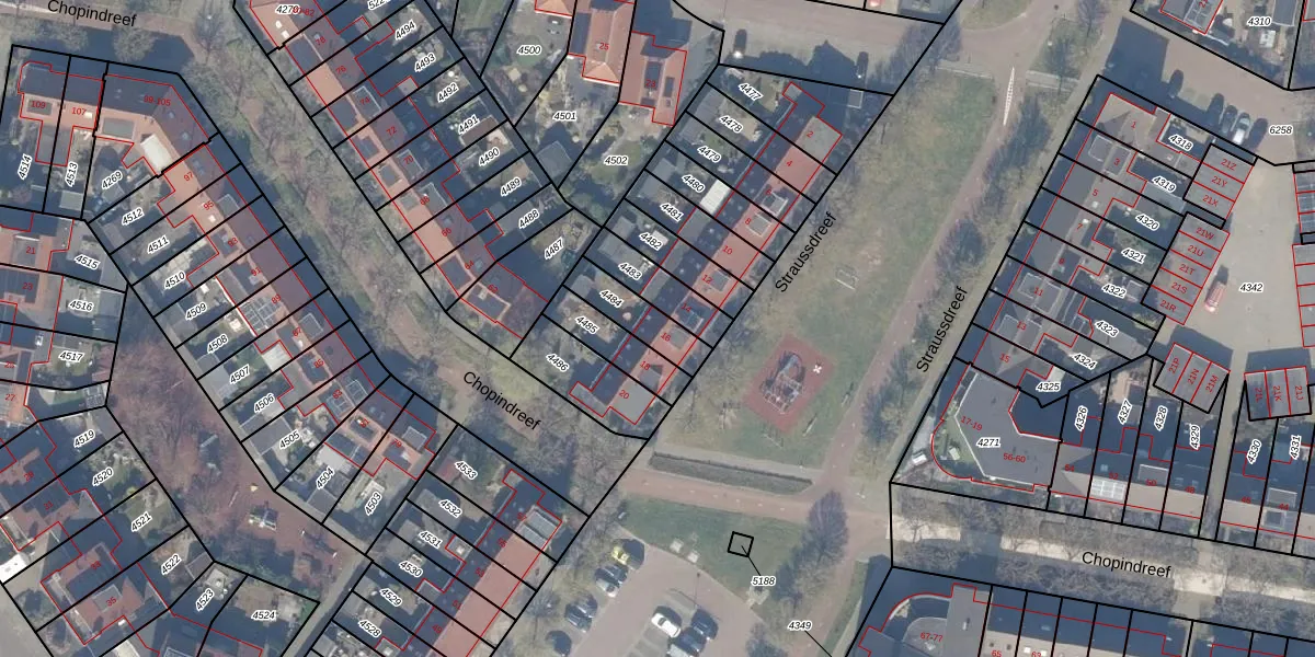 Straussdreef 16 is gelegen op kadastraal perceel HDW00I4484. Deze kadastrale aanduiding is uniek en wordt gebruikt door het Kadaster om eigendomsrechten en andere zakelijke rechten vast te leggen. Het perceel maakt onderdeel uit van de kadastrale gemeente Harderwijk.