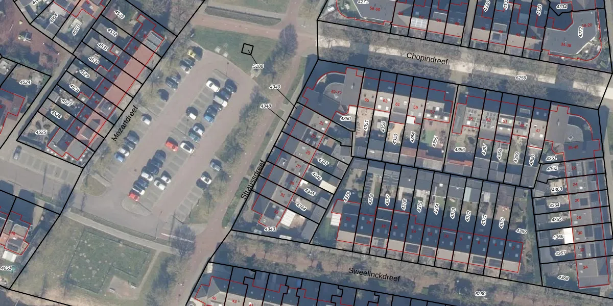 Gebruik de zoekbalk of klik op een perceel voor informatie over de adressen binnen dit perceel.