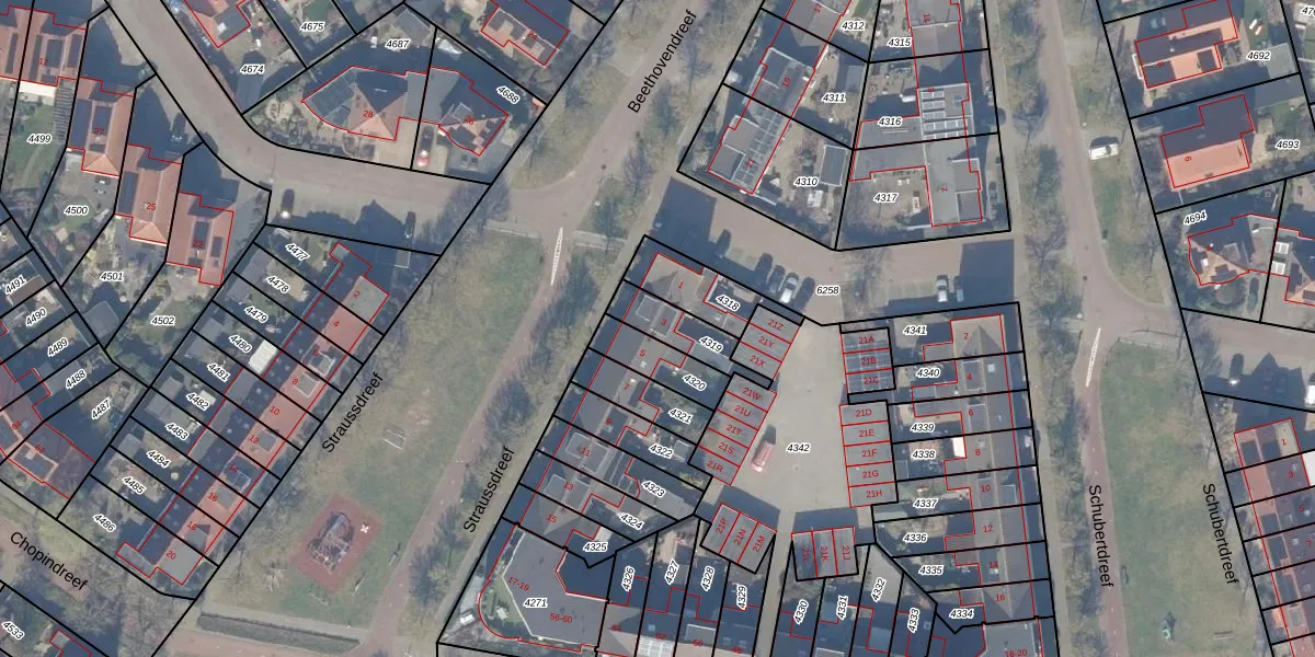 Gebruik de zoekbalk of klik op een perceel voor informatie over de adressen binnen dit perceel.