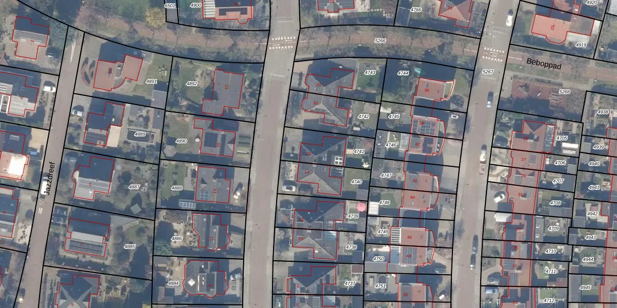 Gebruik de zoekbalk of klik op een perceel voor informatie over de adressen binnen dit perceel.