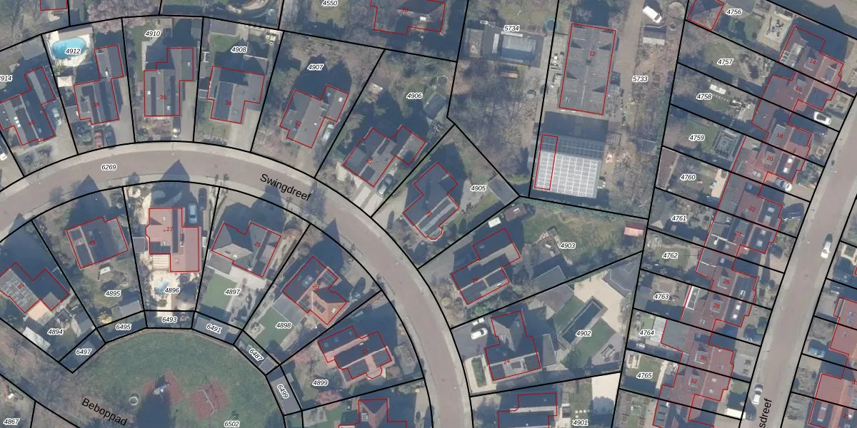 Gebruik de zoekbalk of klik op een perceel voor informatie over de adressen binnen dit perceel.