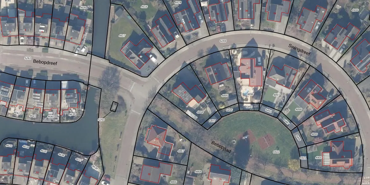 Gebruik de zoekbalk of klik op een perceel voor informatie over de adressen binnen dit perceel.