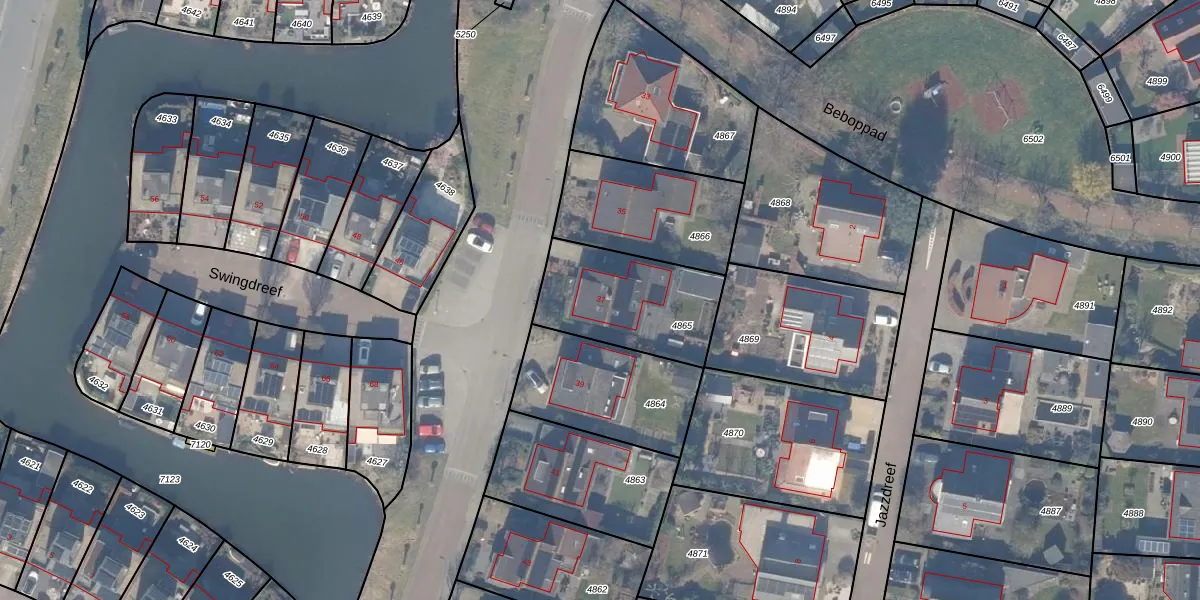 Gebruik de zoekbalk of klik op een perceel voor informatie over de adressen binnen dit perceel.