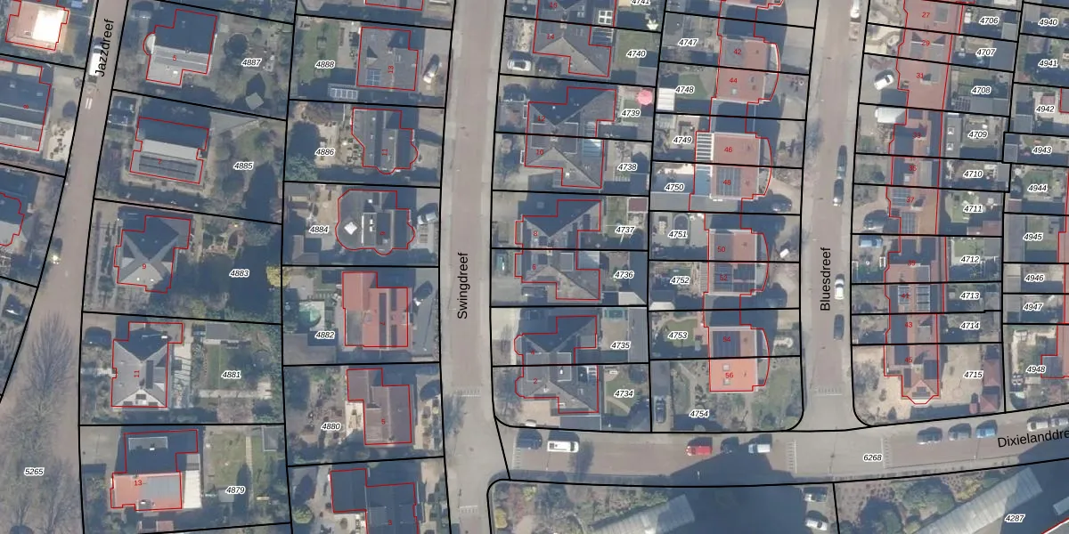 Het perceel waarop Swingdreef 6 staat heeft een oppervlakte van 313 m². Dit is een groot perceel. De perceeloppervlakte wordt geregistreerd door het Kadaster. Gedetailleerde informatie over de maten van dit perceel kunt u vinden in het rapport Kadastrale kaart met maatvoering van Swingdreef 6.