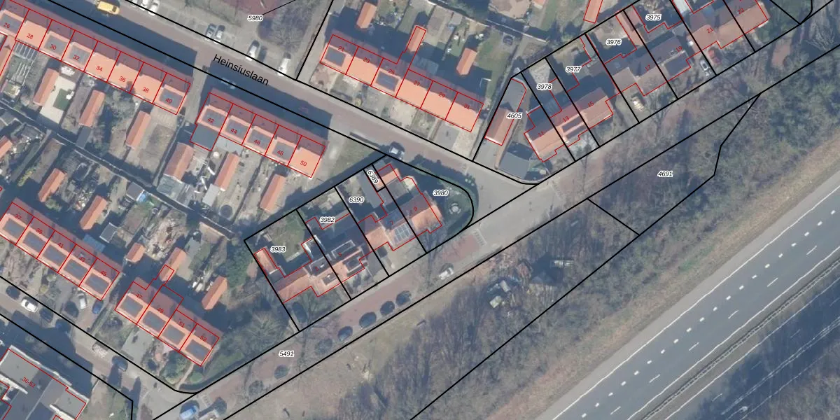 Gebruik de zoekbalk of klik op een perceel voor informatie over de adressen binnen dit perceel.