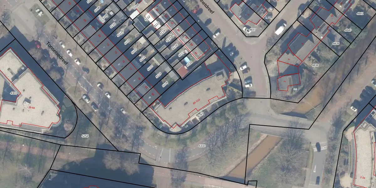 Het perceel waarop Tonselsedreef 109 staat heeft een oppervlakte van 1230 m². Dit is een zeer groot perceel. De perceeloppervlakte wordt geregistreerd door het Kadaster. Gedetailleerde informatie over de maten van dit perceel kunt u vinden in het rapport Kadastrale kaart met maatvoering van Tonselsedreef 109.