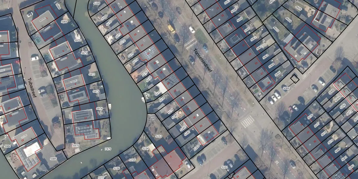 Gebruik de zoekbalk of klik op een perceel voor informatie over de adressen binnen dit perceel.
