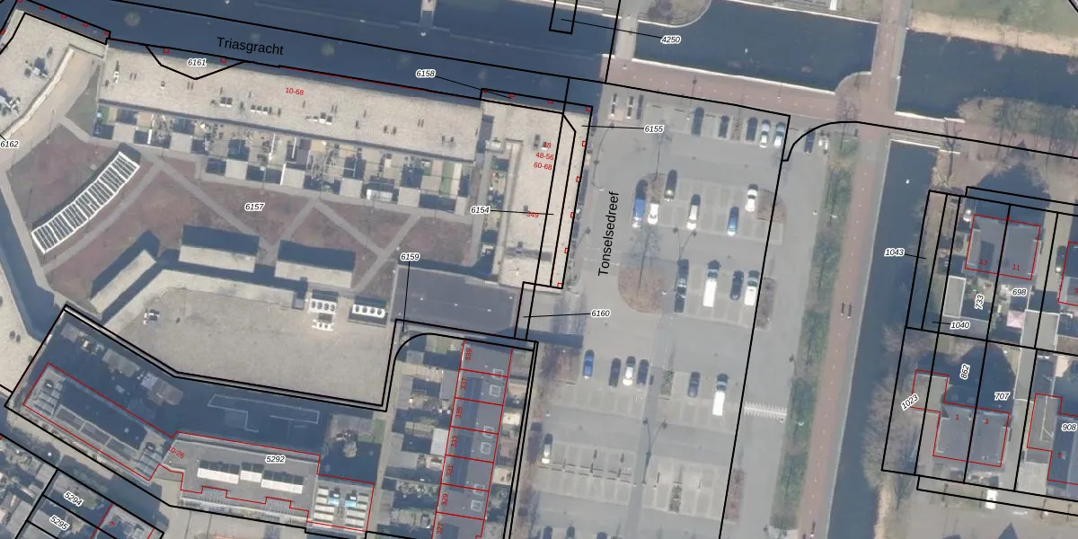 Het perceel waarop Triasgracht 56 staat heeft een oppervlakte van 85 m². Dit is een klein perceel. De perceeloppervlakte wordt geregistreerd door het Kadaster. Gedetailleerde informatie over de maten van dit perceel kunt u vinden in het rapport Kadastrale kaart met maatvoering van Triasgracht 56.