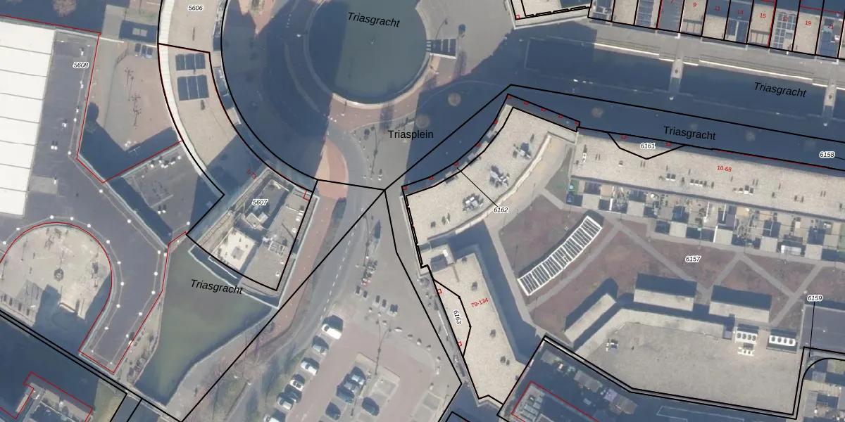 Het perceel waarop Triasplein 121 staat heeft een oppervlakte van 6065 m². Dit is een zeer groot perceel. De perceeloppervlakte wordt geregistreerd door het Kadaster. Gedetailleerde informatie over de maten van dit perceel kunt u vinden in het rapport Kadastrale kaart met maatvoering van Triasplein 121.