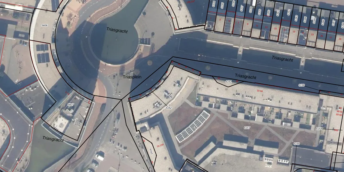 Het perceel waarop Triasplein 124 staat heeft een oppervlakte van 6065 m². Dit is een zeer groot perceel. De perceeloppervlakte wordt geregistreerd door het Kadaster. Gedetailleerde informatie over de maten van dit perceel kunt u vinden in het rapport Kadastrale kaart met maatvoering van Triasplein 124.