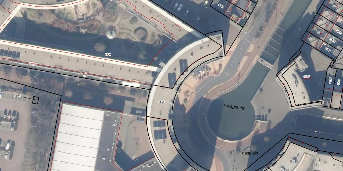 Het perceel waarop Triasplein 2 staat heeft een oppervlakte van 6542 m². Dit is een zeer groot perceel. De perceeloppervlakte wordt geregistreerd door het Kadaster. Gedetailleerde informatie over de maten van dit perceel kunt u vinden in het rapport Kadastrale kaart met maatvoering van Triasplein 2.