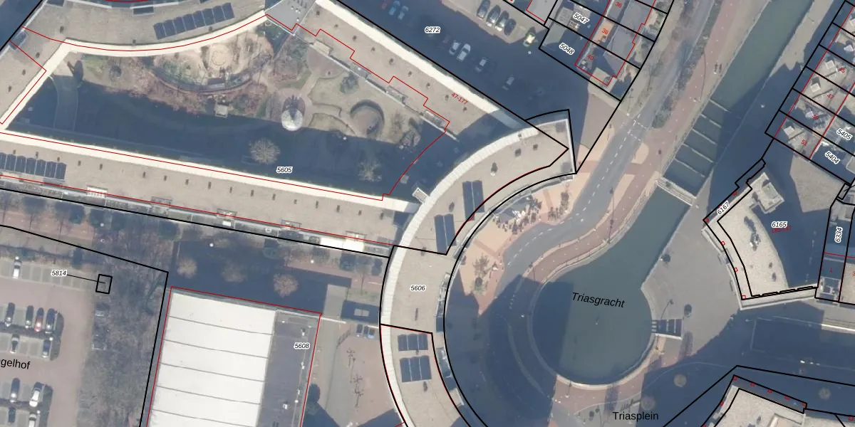 Het perceel waarop Triasplein 32 staat heeft een oppervlakte van 6542 m². Dit is een zeer groot perceel. De perceeloppervlakte wordt geregistreerd door het Kadaster. Gedetailleerde informatie over de maten van dit perceel kunt u vinden in het rapport Kadastrale kaart met maatvoering van Triasplein 32.
