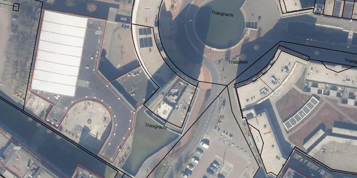 Het perceel waarop Triasplein 54 staat heeft een oppervlakte van 919 m². Dit is een groot perceel. De perceeloppervlakte wordt geregistreerd door het Kadaster. Gedetailleerde informatie over de maten van dit perceel kunt u vinden in het rapport Kadastrale kaart met maatvoering van Triasplein 54.