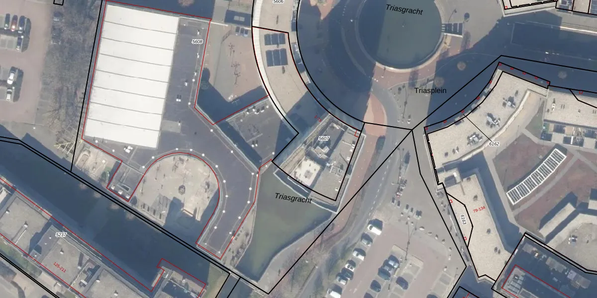 Het perceel waarop Triasplein 65 staat heeft een oppervlakte van 919 m². Dit is een groot perceel. De perceeloppervlakte wordt geregistreerd door het Kadaster. Gedetailleerde informatie over de maten van dit perceel kunt u vinden in het rapport Kadastrale kaart met maatvoering van Triasplein 65.