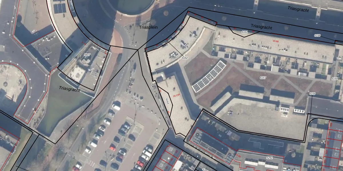 Het perceel waarop Triasplein 98 staat heeft een oppervlakte van 6065 m². Dit is een zeer groot perceel. De perceeloppervlakte wordt geregistreerd door het Kadaster. Gedetailleerde informatie over de maten van dit perceel kunt u vinden in het rapport Kadastrale kaart met maatvoering van Triasplein 98.
