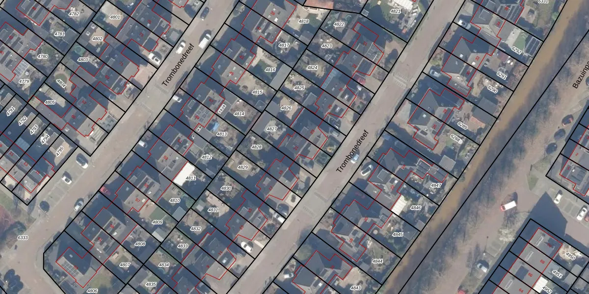 Trombonedreef 21 is gelegen op kadastraal perceel HDW00I4827. Deze kadastrale aanduiding is uniek en wordt gebruikt door het Kadaster om eigendomsrechten en andere zakelijke rechten vast te leggen. Het perceel maakt onderdeel uit van de kadastrale gemeente Harderwijk.