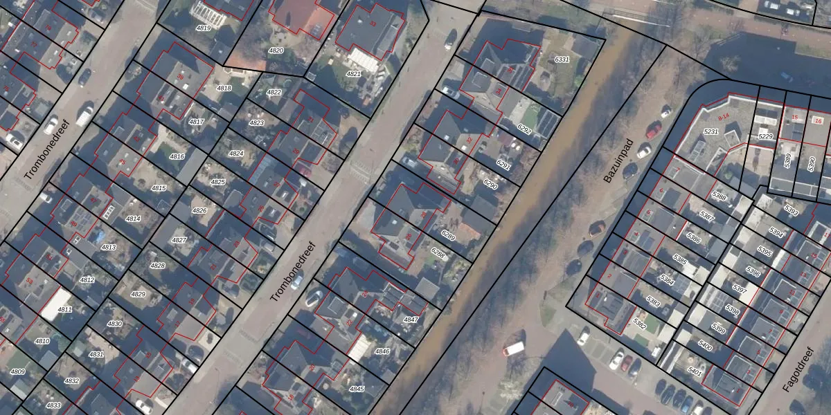 Het perceel waarop Trombonedreef 28 staat heeft een oppervlakte van 320 m². Dit is een groot perceel. De perceeloppervlakte wordt geregistreerd door het Kadaster. Gedetailleerde informatie over de maten van dit perceel kunt u vinden in het rapport Kadastrale kaart met maatvoering van Trombonedreef 28.