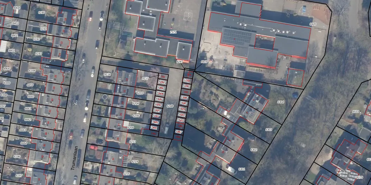 Het perceel waarop Trumanlaan 19-D staat heeft een oppervlakte van 684 m². Dit is een groot perceel. De perceeloppervlakte wordt geregistreerd door het Kadaster. Gedetailleerde informatie over de maten van dit perceel kunt u vinden in het rapport Kadastrale kaart met maatvoering van Trumanlaan 19-D.