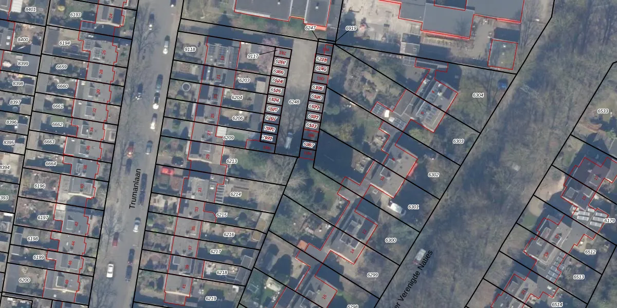 Het perceel waarop Trumanlaan 19-M staat heeft een oppervlakte van 591 m². Dit is een groot perceel. De perceeloppervlakte wordt geregistreerd door het Kadaster. Gedetailleerde informatie over de maten van dit perceel kunt u vinden in het rapport Kadastrale kaart met maatvoering van Trumanlaan 19-M.