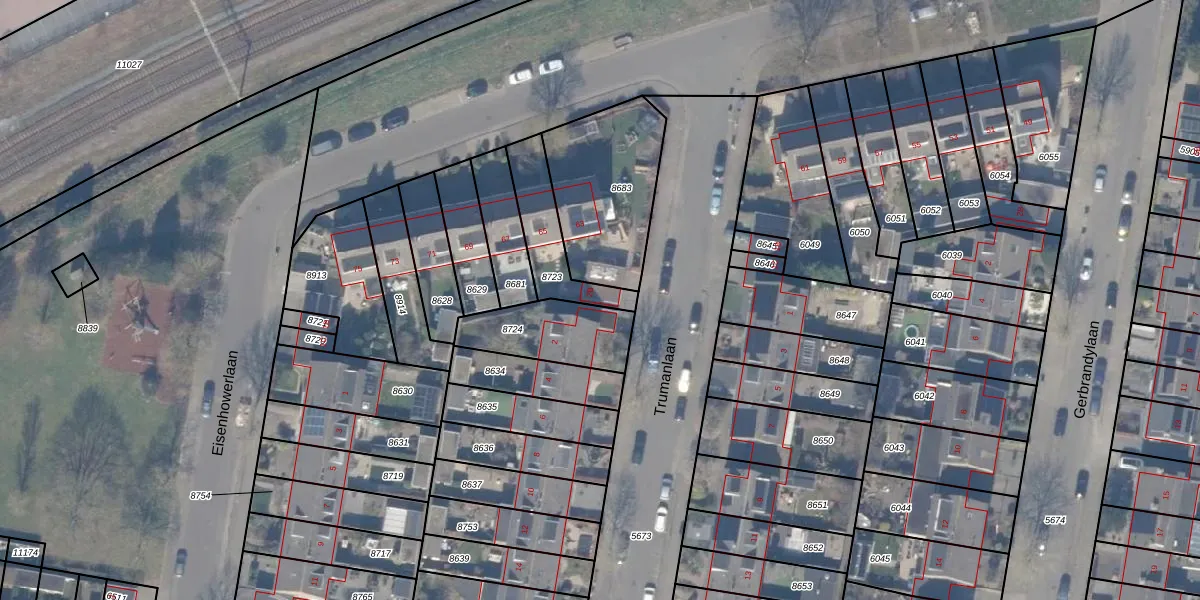 Trumanlaan 2-B is gelegen op kadastraal perceel HDW00D8723. Deze kadastrale aanduiding is uniek en wordt gebruikt door het Kadaster om eigendomsrechten en andere zakelijke rechten vast te leggen. Het perceel maakt onderdeel uit van de kadastrale gemeente Harderwijk.