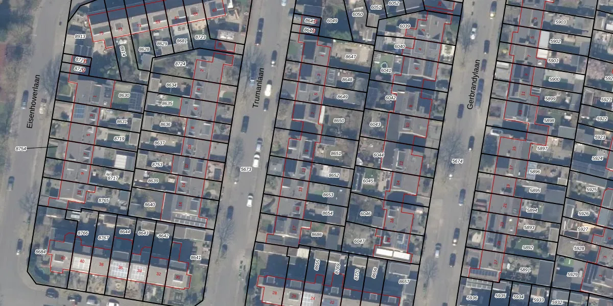 Trumanlaan 9 is gelegen op kadastraal perceel HDW00D8651. Deze kadastrale aanduiding is uniek en wordt gebruikt door het Kadaster om eigendomsrechten en andere zakelijke rechten vast te leggen. Het perceel maakt onderdeel uit van de kadastrale gemeente Harderwijk.