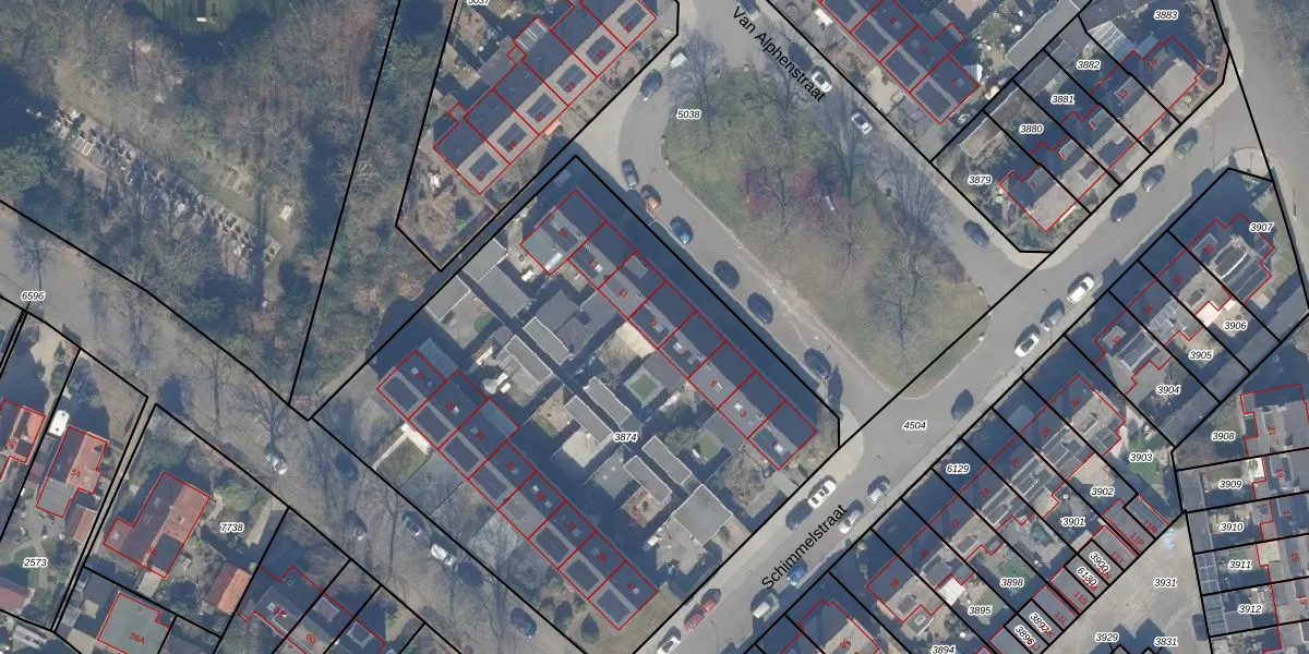 Het perceel waarop Van Alphenstraat 9 staat heeft een oppervlakte van 3290 m². Dit is een zeer groot perceel. De perceeloppervlakte wordt geregistreerd door het Kadaster. Gedetailleerde informatie over de maten van dit perceel kunt u vinden in het rapport Kadastrale kaart met maatvoering van Van Alphenstraat 9.