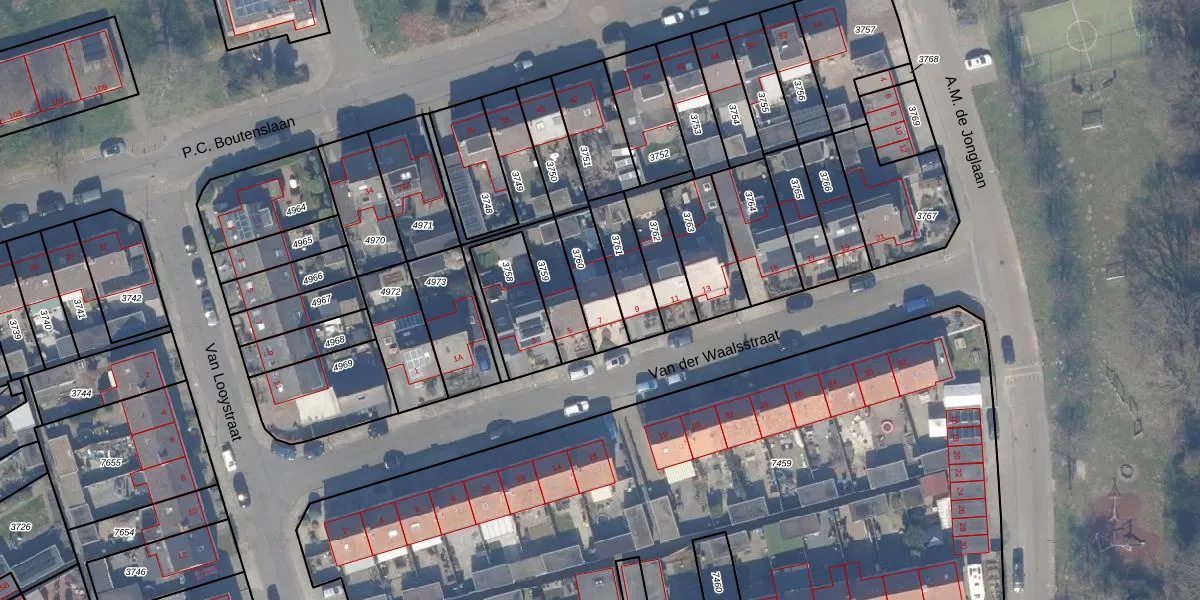 Het perceel waarop Van der Waalsstraat 7 staat heeft een oppervlakte van 142 m². Dit is een middelgroot perceel. De perceeloppervlakte wordt geregistreerd door het Kadaster. Gedetailleerde informatie over de maten van dit perceel kunt u vinden in het rapport Kadastrale kaart met maatvoering van Van der Waalsstraat 7.