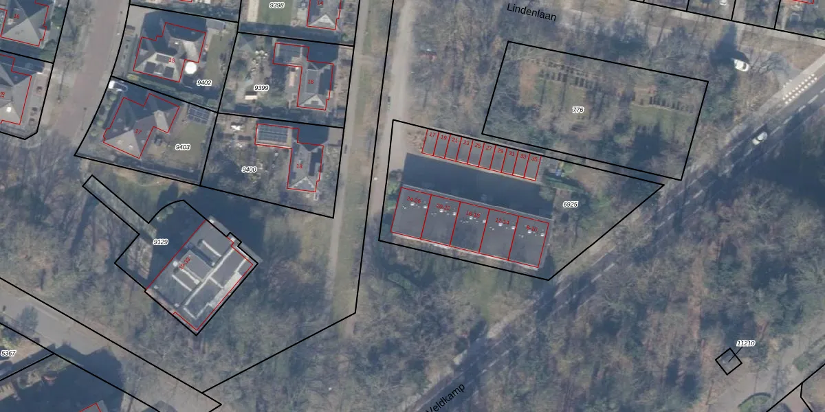 Het perceel waarop Veldkamp 26 staat heeft een oppervlakte van 1605 m². Dit is een zeer groot perceel. De perceeloppervlakte wordt geregistreerd door het Kadaster. Gedetailleerde informatie over de maten van dit perceel kunt u vinden in het rapport Kadastrale kaart met maatvoering van Veldkamp 26.
